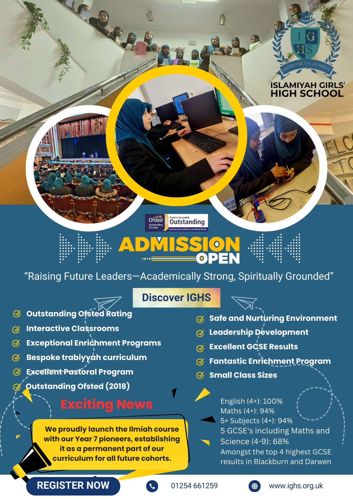 I am filled with immense gratitude and a deep sense of indebtedness to the staff at IGHS for their constant support and guidance. Their dedication helped me achieve level 9 in the Sciences, Maths, English Language, History, RS and Business, level 8 in Citizenship, English Literature, Arabic and a level 7 in Computer Science which laid the groundwork for my future success. I went on to study A-Levels in Sociology, Chemistry and Biology for which I attained A*AA and I’m now proceeding to study Medicine at Edge Hill University.