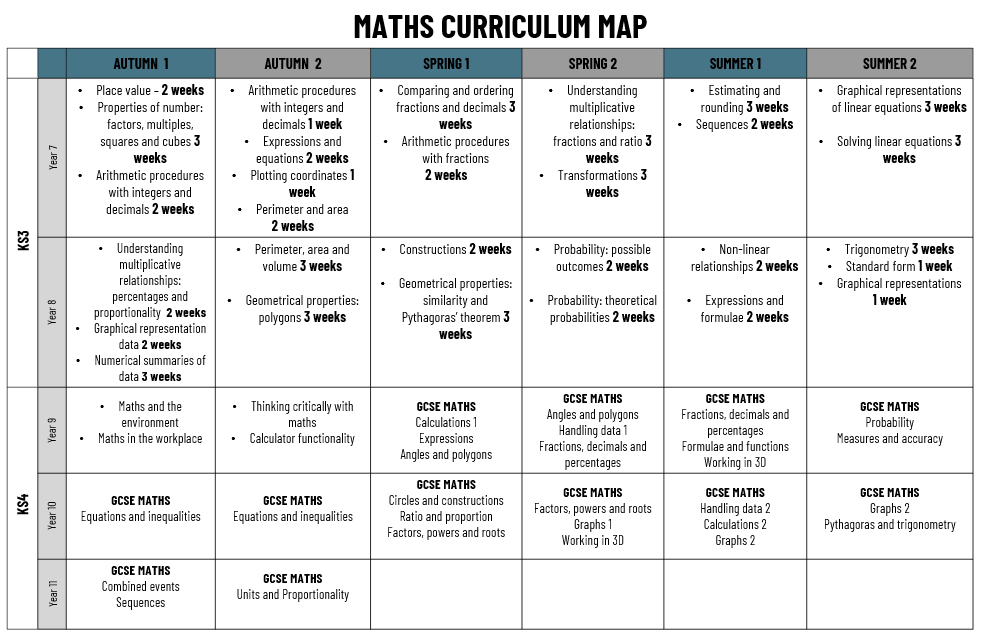 By the end of Key Stage 4 pupils will demonstrate a deeper understanding of mathematical concepts. Pupils will be confident, secure and fluent in interpreting diagrams and solutions, selecting the appropriate method to break down and solve problems and reason geometrically. They will be able to independently apply, interpret and evaluate their solution to complex problems.