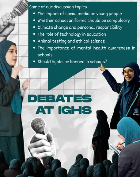 Our Year 7–10 students actively take part in our school’s debate competitions, where they develop their oracy skills by discussing and challenging each other’s views on a range of thought-provoking topics such as: